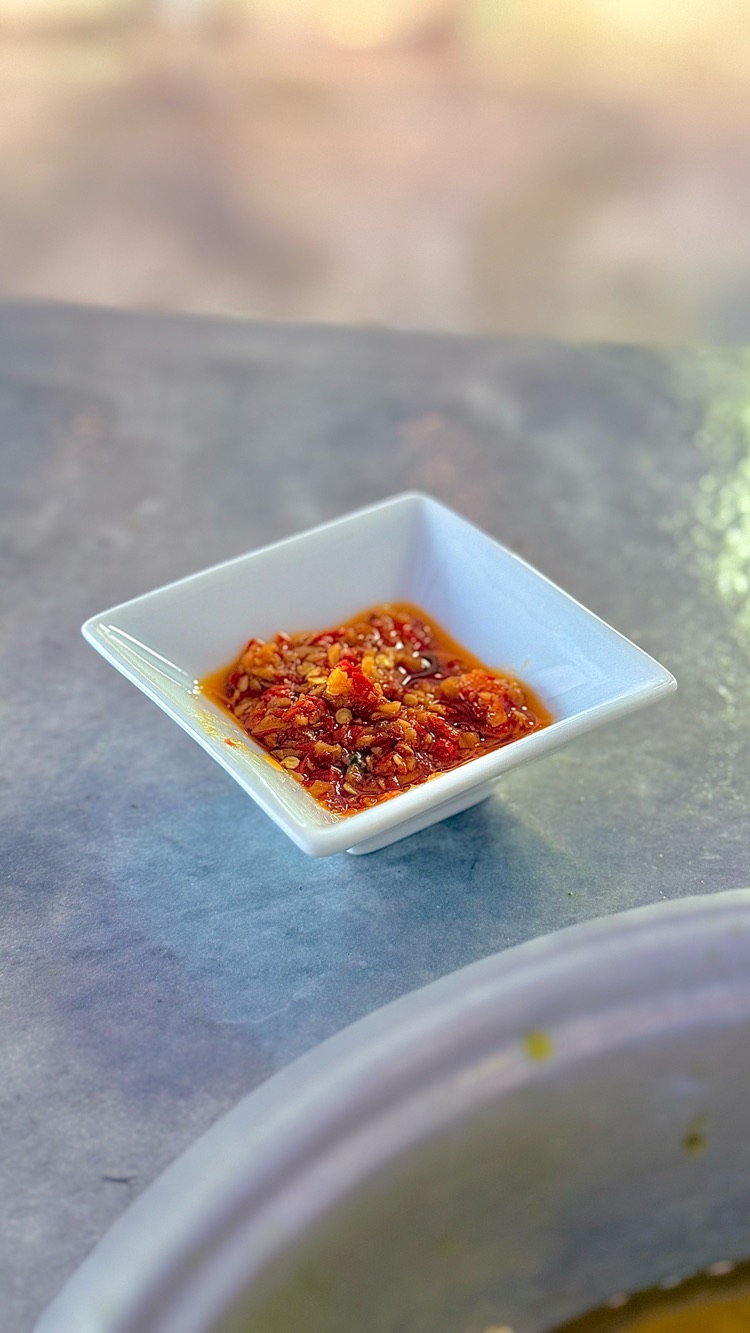 The lady owner’s generosity shines as she shares her house-made chili with me. Though undeniably spicy, it packs a punch of flavor that elevates every bite.