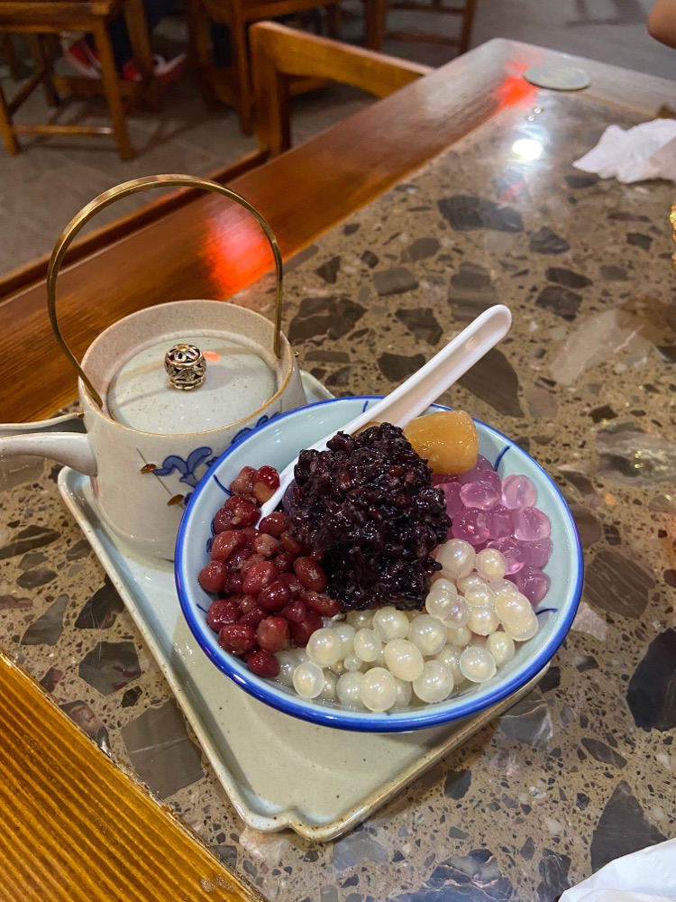 I very much enjoyed this dessert made up of black rice, red beans, taro balls, crystal boba, sago and etc!! 🫘❤️