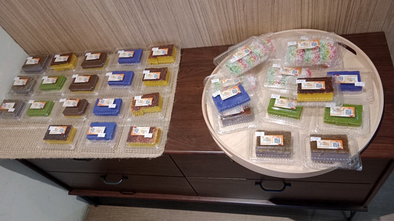 Kuih- RM 4-5 / box, jenama MANISAN KAMPUNG, quite pricy. Recommend tapioca with cheese top, very nice!