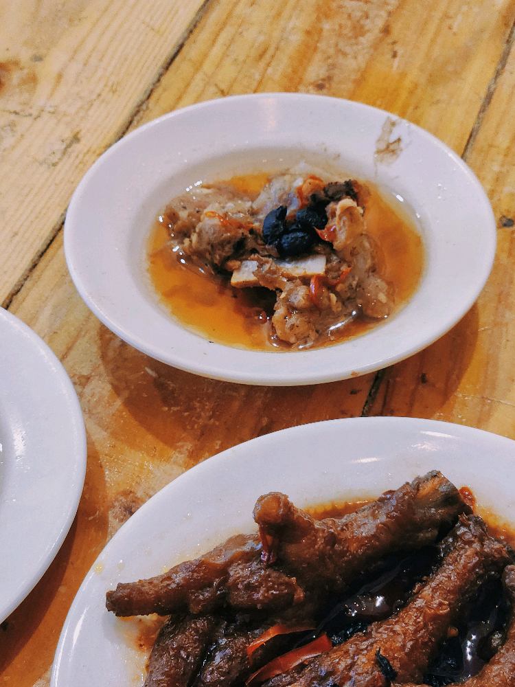 Braised phoenix claws, black bean pork ribs, bean curd roll are served in small portion, especially the pork ribs.