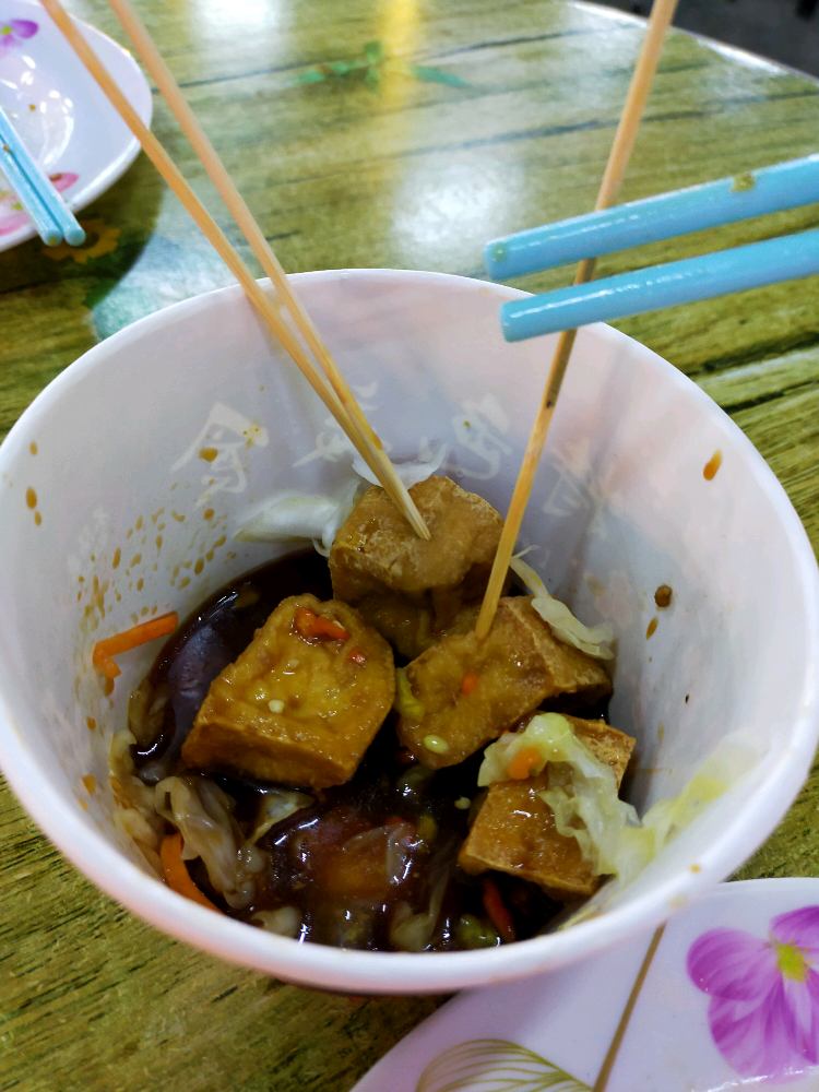 Kolombong 1766夜市有一个档口卖臭豆腐的叫做“天下臭豆腐”。相信吃过臭豆腐的顾客不是超爱就是超恨,毕竟不是每个人都接受臭臭的食物。我是喜欢臭豆腐的😄 这个臭豆腐对我来说还好而已,不算是很好吃也不算难吃。也许还是喜欢台湾的臭豆腐。 酱汁 - 味道很像有一点不平衡,不知道是什么,但是就感觉缺了一个味道。 腌泡菜 - 这个算是不错吃。但是对我来说吃多了到最后会感觉太酸。如果减低一点酸度会来的更好,尤其是对于有胃酸问题的顾客会比较好入口。味道也是感覺和台灣比起來有一定的差距,也不知道缺了什么味道😅 豆腐 - 豆腐的外皮不够脆,偏韧。里面不够空洞,口感来的比较扎实。所以酱汁的味道会比较难被吸入进豆腐里,感觉融入不到一起。味道也不够臭,也许商家是为了让讨厌臭豆腐的顾客也能够接受吧。但是对于爱臭豆腐的顾客来说,可能会有点失望。毕竟味道偏淡,也没什么臭味。 如果你是讨厌臭豆腐的,建议可以试一试看看自己能不能尝试接受以及欣赏它的魅力。如果你是很爱臭豆腐的,期望别太高哟……不然会更加失望。环境有待加强,但是也有点难。开放的空间和地点难免会看到有苍蝇围绕着档口。如果商家能够带着口罩对我来说会更好,我想强调这是我个人的看法呀。毕竟疫情的关系,大家还是别掉以轻心。另一方面能够让更多顾客安心。如果问我还会不会再回购,也许不会了。不是难吃,但是没有亮点吸引我再回购。价钱是一碗十块钱,可选辣或不辣。这个是现点现炸,所以需要一点耐心等待。如果你赶时间,不建议你买。