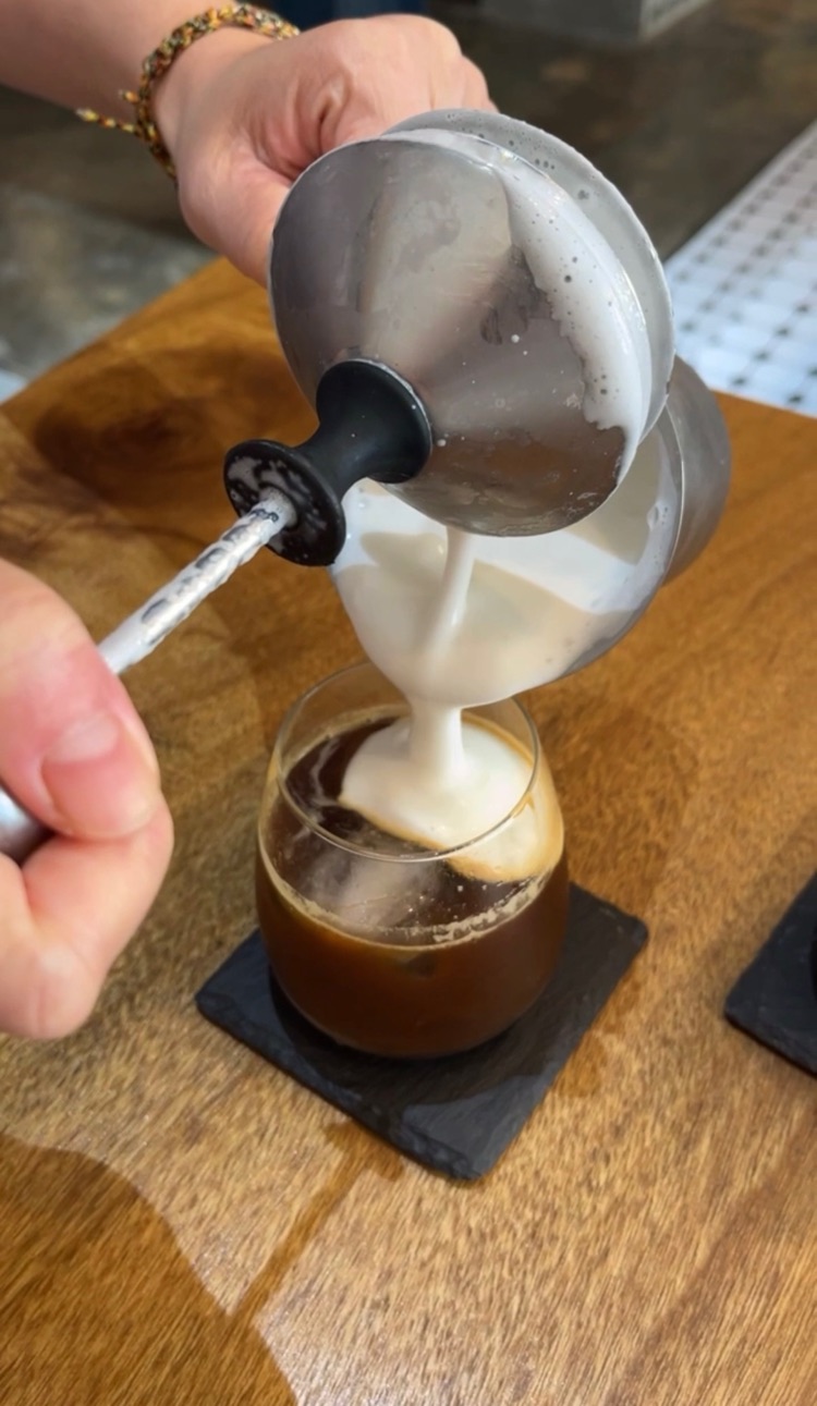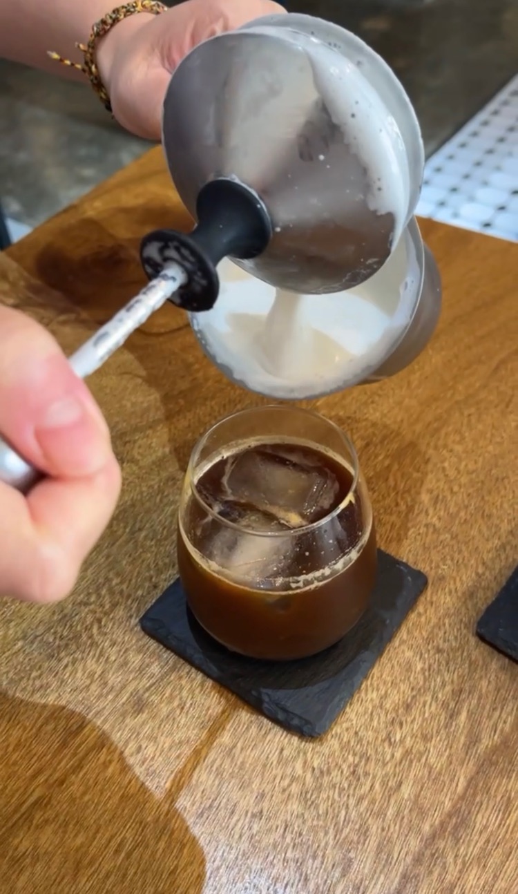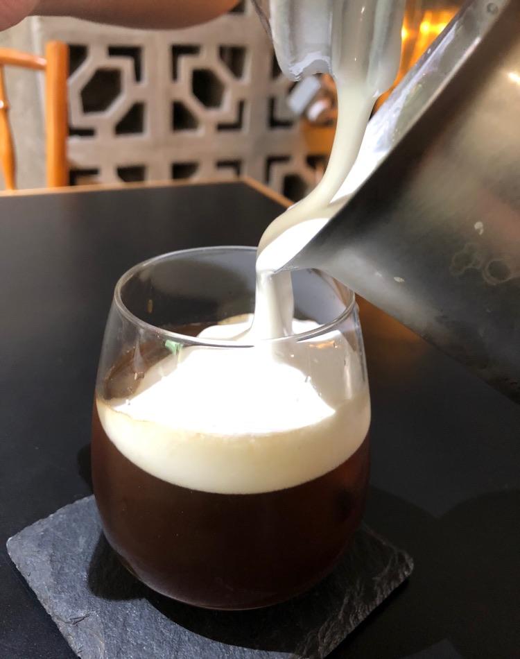 When the barista is preparing Irish coffee, they will create the final milk foam in front of you, adding a sense of ceremony.