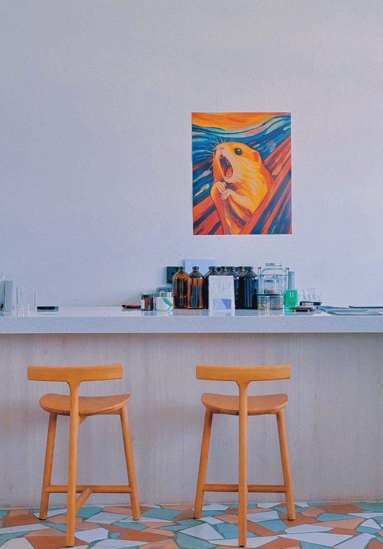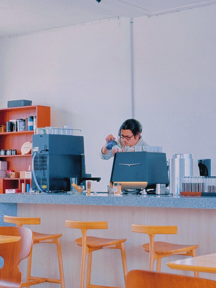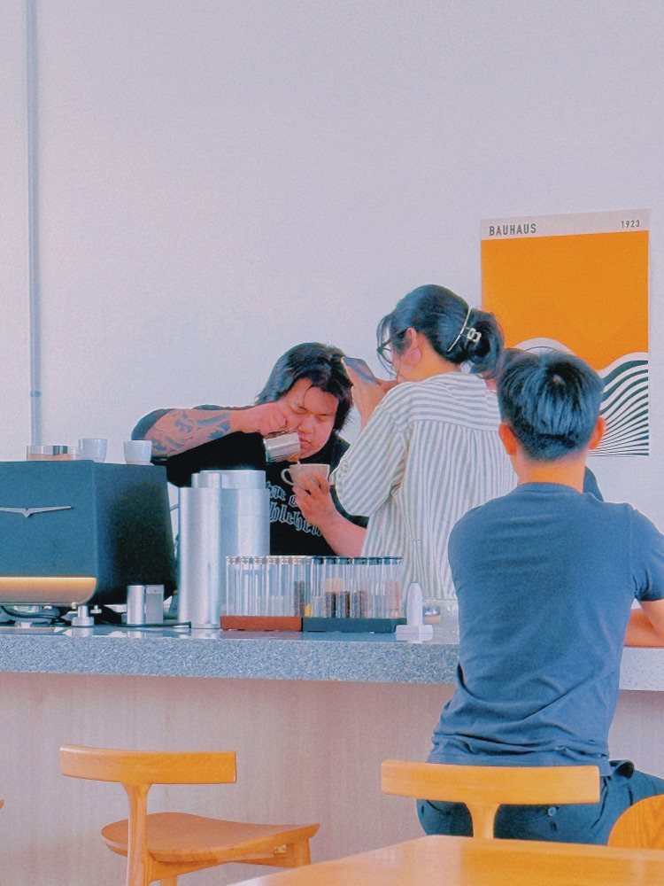 Cozy, chill, nice music, harmony vibe, quiet, i'm willing to stay here for whole day since it's serving hot food dy