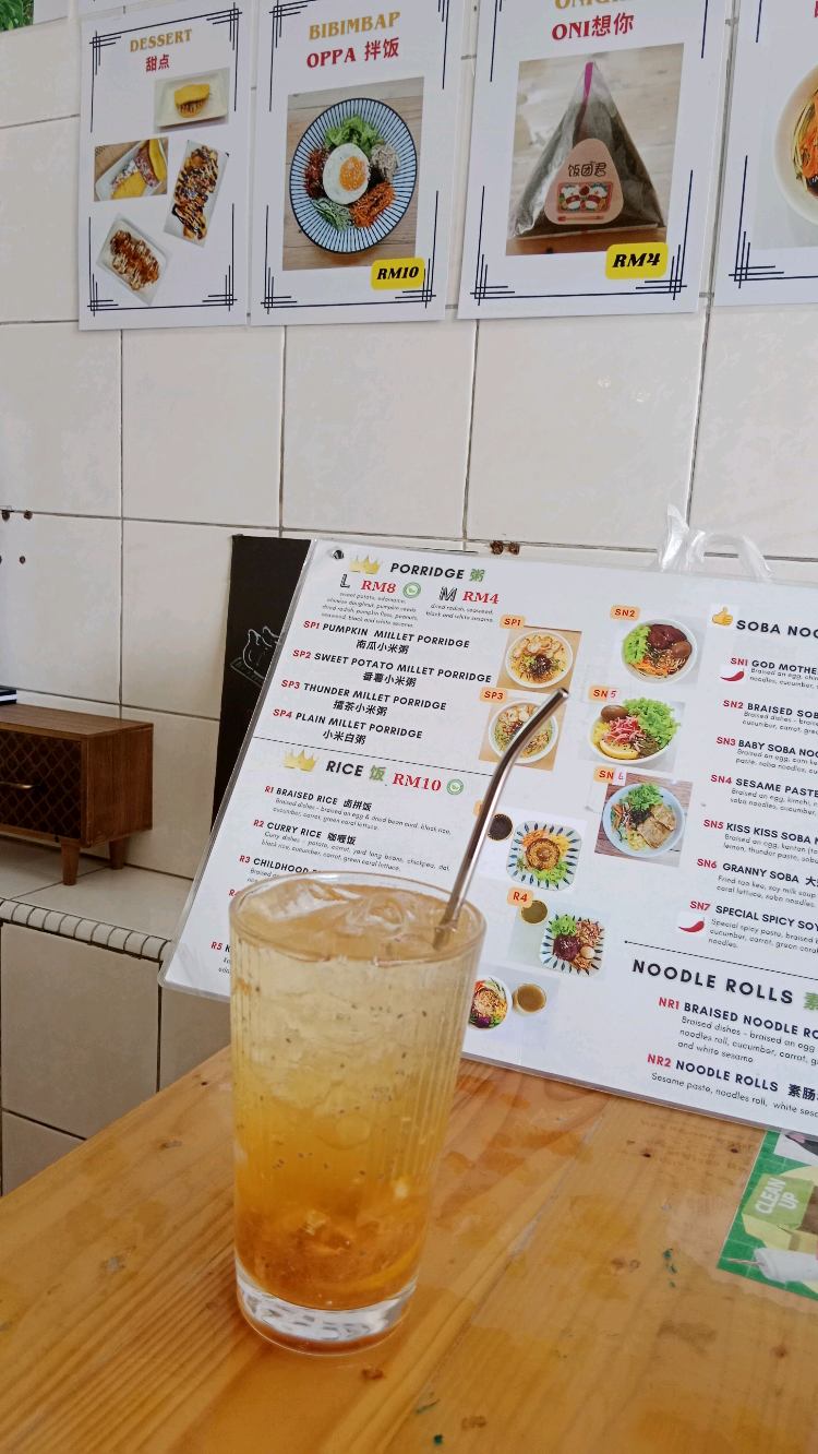 Colourful meals make u happy Very simple ingredients with different interesting , unique, creative combination & cute names, not much additives. Highly Recommend: RM3.50 Honey Lemon Special- fermented honey lemon makes it becomes very Atas with very rakyat price, very very nice!!!!! If pour sparkling water in then can sell RM13.50 dy. Food i tried today: Granny Soba: Soy milk base, thin broth, sweet & salty, good combination. Nothing can goes wrong with this. Kiss Kiss Soba Noddles, the thunder paste is different from usual Lei Cha 擂茶, not mint, not basil, not thick, paired with pineapple, bunga kantan & braised egg, complicated taste, but acceptable. Bergedil: sgt degil, hard hard Ladyboss Miss Jeslyn very friendly & patience to explain the idea behind the menu, very passion. Her philosophy: Simplicity is difficult, bring back simplicity, bring back happiness. In Heritage Plaza, Parking fees starts from RM2 Little unit, hot, limited space Come come support if u ngam ngam nearby Another branch at wisma Damai