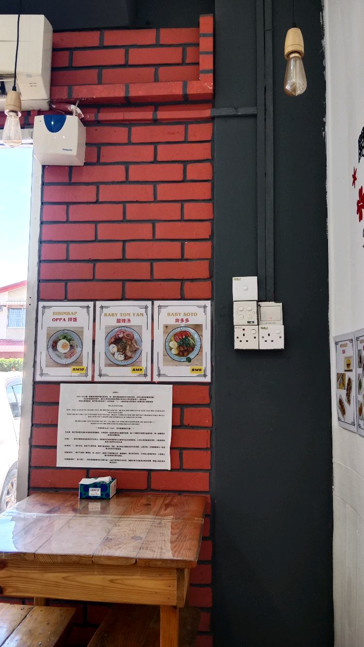 Here ada aircon, 7-9 seats , 3 tables, RM0.50 parking per/hr, little warm restaurant