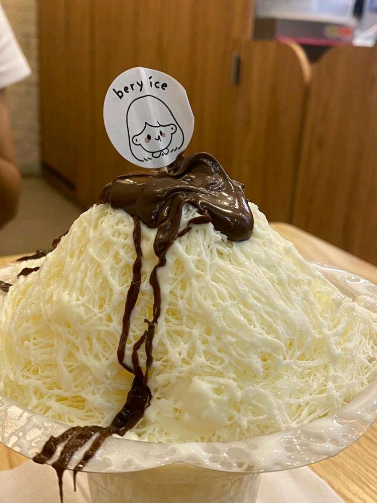 Korean milk bingsu with Nutella sauce. Quite full so only get the smallest one. Taste is good Korean milk got very strong milk taste and not too sweet. Match well with the Nutella.
