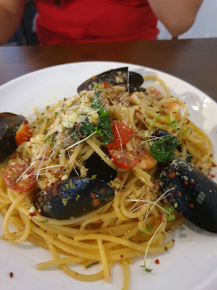 Saw friends post at insta ( few times ) Just had a chance to pass by Plaza 333, then decide to try it. ordered : Carbonara & seafood aglio aglio Hmm okay la , looks good in picture but " other restaurants might better " 😬