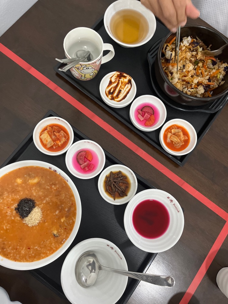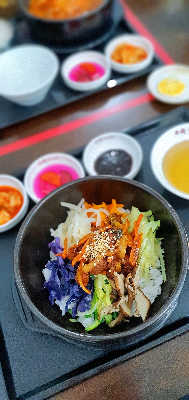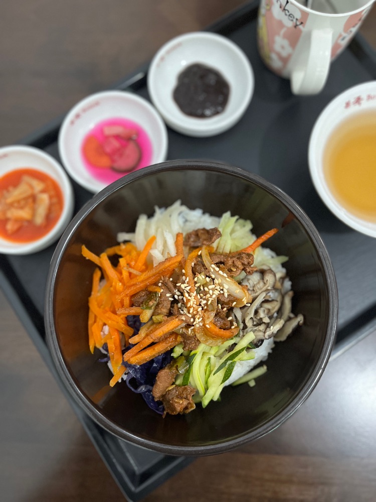 Anyeonghaseiyo, this is my second visit. I've ordered Bibimbap with pork, a cup of hot red jujube tea, and kimchi pork stew (no picture).