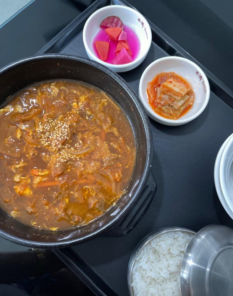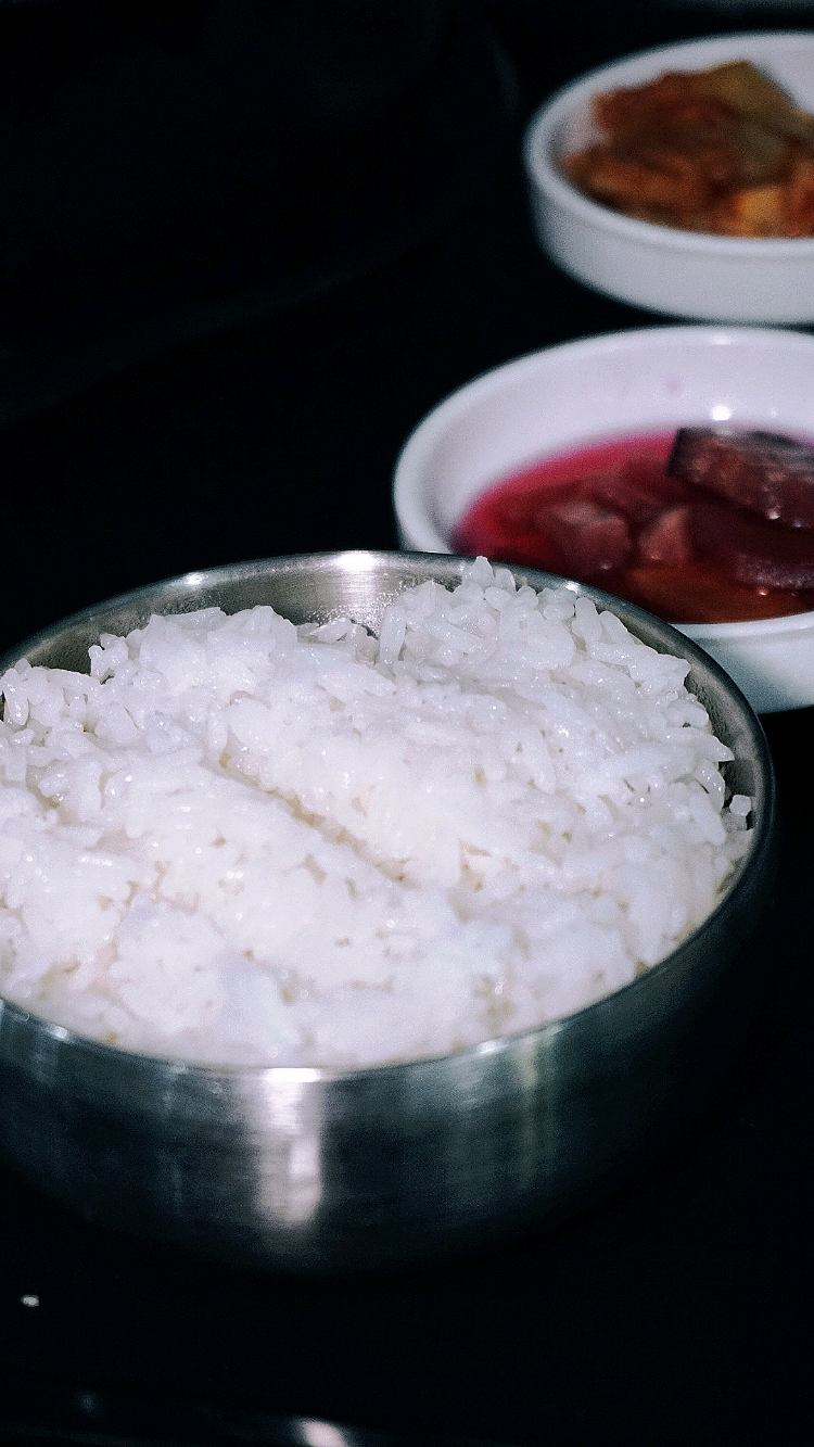 They've free refillable of side dishes; kimchi & pickled cucumber, and seaweed soup. Checkout my ig:_humanburrito.bki for pictures & videos.