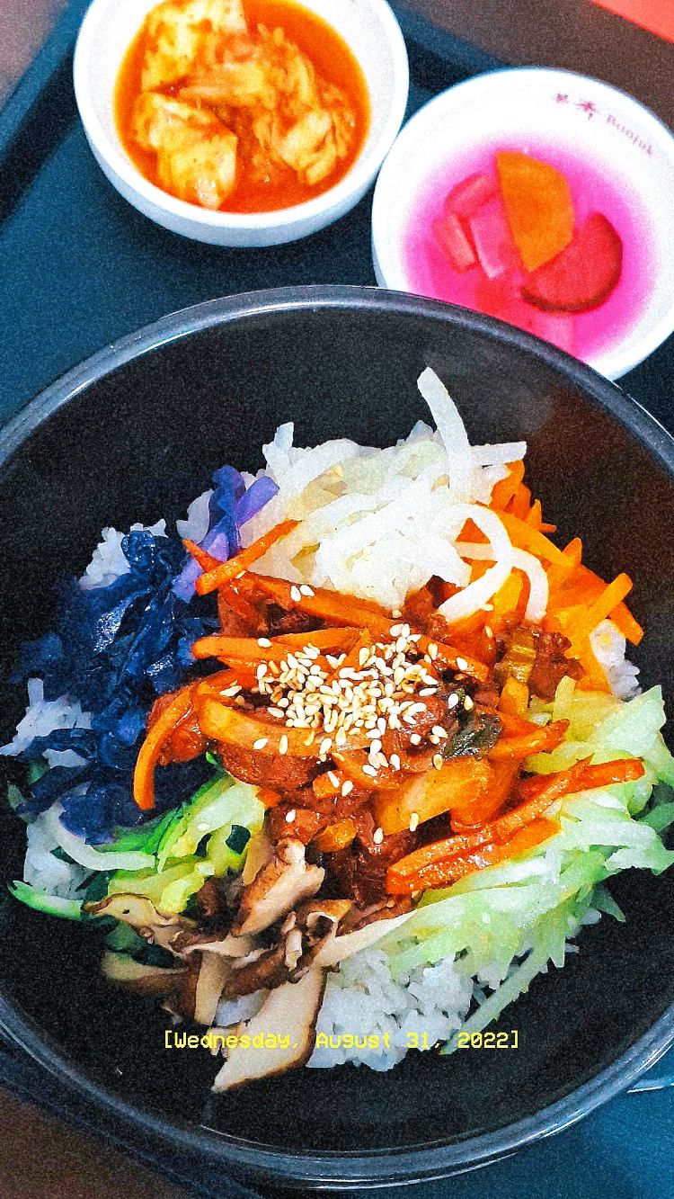 This is the most healthiest version of Bibimbap I've ever had. Also, it have purple color marinated veggies which is rare & attractive.