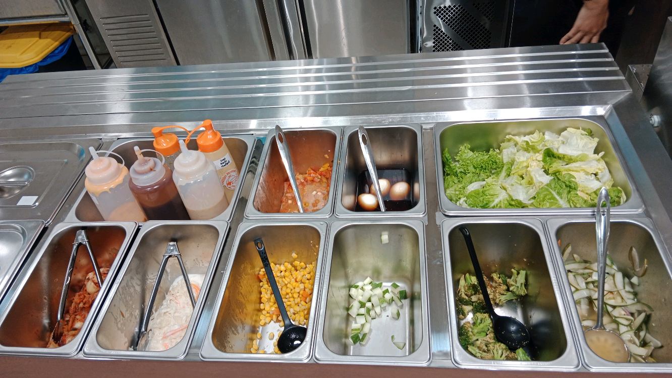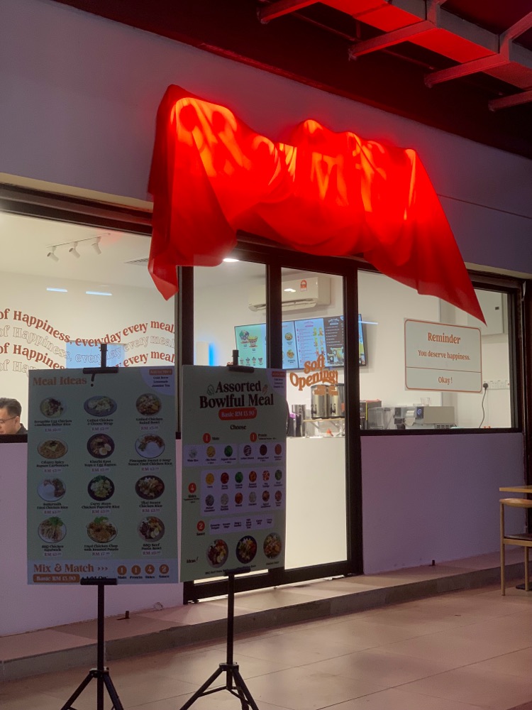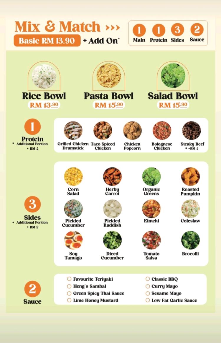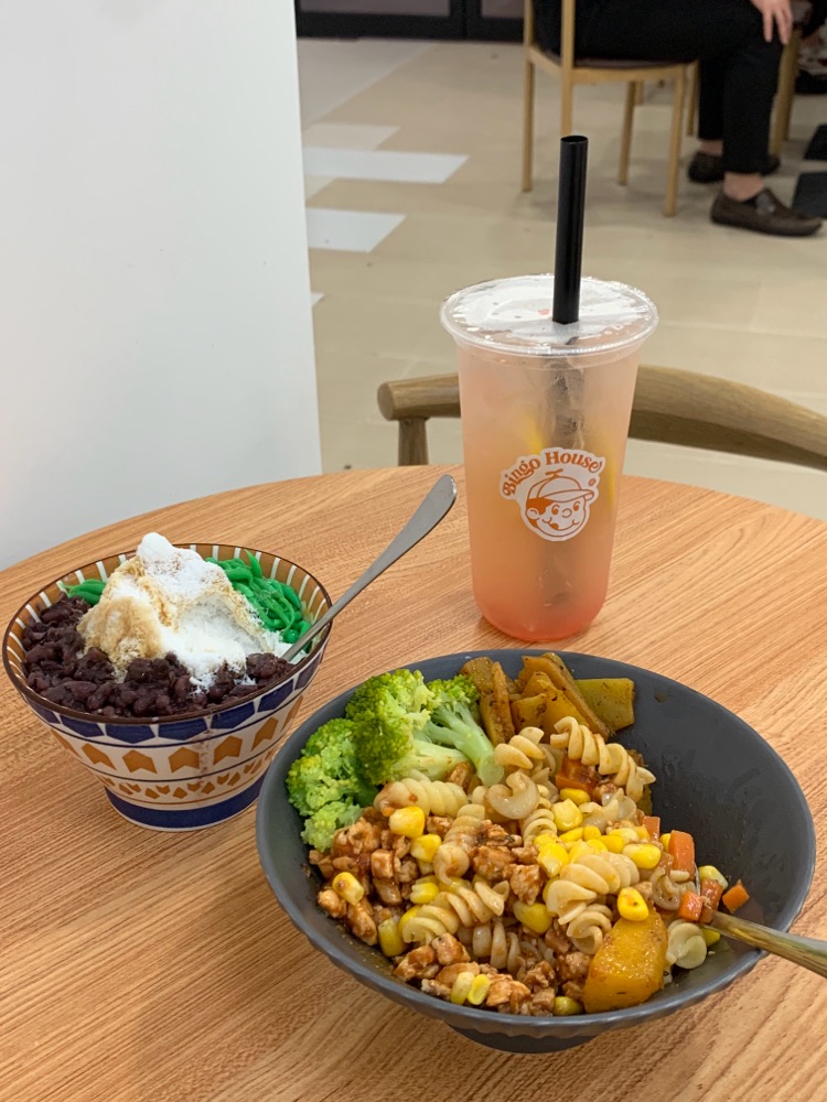 Price ok & got limited choices for simplified poke bowl, love the selection of pasta Surprised to get one whole egg, nice egg No topping available Sauce not separated, directly squeezed on top Not heavy taste, quite healthy Tomyam popcorn cannot, dry & tough breast meat, not marinated inside, only outside powder taste Bingsu.... emm... as u can c, today all ingredients dry dry, red bean 1 biji 1 biji separated, chendol 1 strip 1 strip dry separated, santan little, very healthy lah.... not for us Parking....emm.... RM 6 loh Oh ya, warm water RM0.80 per glass ya