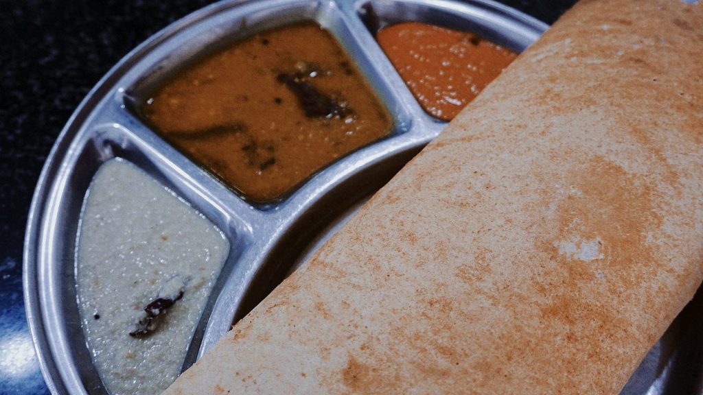 I love the coconut, spicy chutney & veggies dhal that come with it.