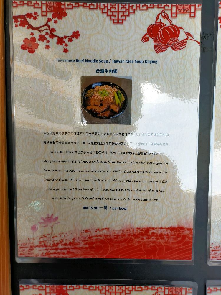 2) Taiwanese Beef Noodle Soup 红烧牛肉面 (RM15.90)