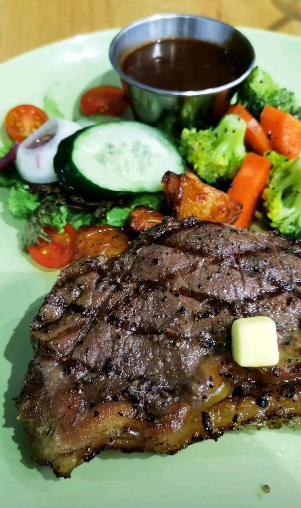 I came for the beef, of course I’ve ordered Angus Sirloin Steak (RM98). Given the amount of food we were trying, I’ve decided to keep the legendary Wagyu Ribeye for another day. The medium steak 🥩 was exactly what we’ve been expecting it to be. Nicely charred grilled marks, evenly cooked with just nice juiciness left within, spread the butter all over it, and you’re good to go. Eat it on its own, the beef was tender and not chewy. It might not be Wagyu, but whatever layer of fat it offers here still heavenly smooth on your tongue 😛. The sides slightly differs with some grilled vegetables and potatoes.