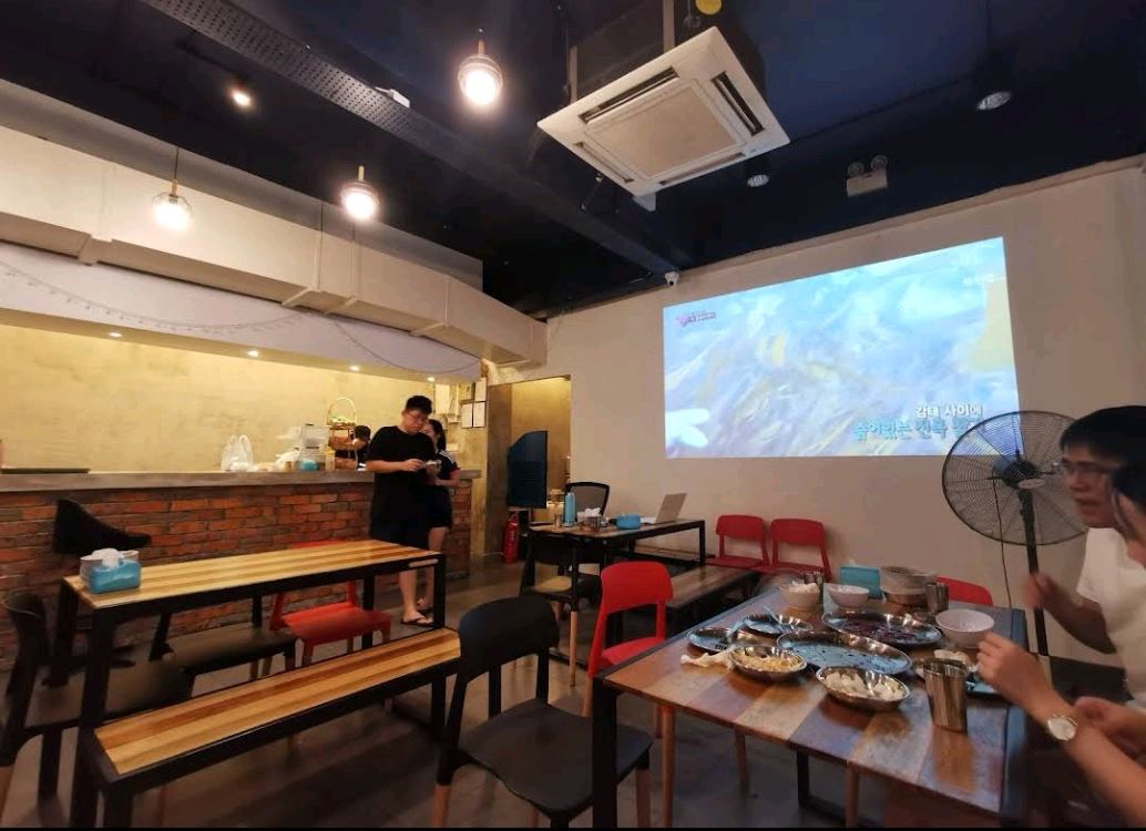 There's also a big screen with music. Clean environment and can pay with ewallet.