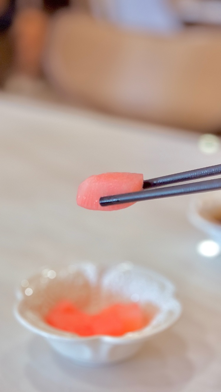 The fresh pork dumplings were a pleasurable treat, juicy with added the side dipping vinegar for a tangy touch on the pallet. Despite that, there are housemade marinated white radish pink cubes alongside the utensils.