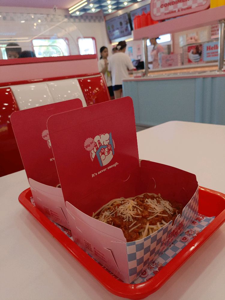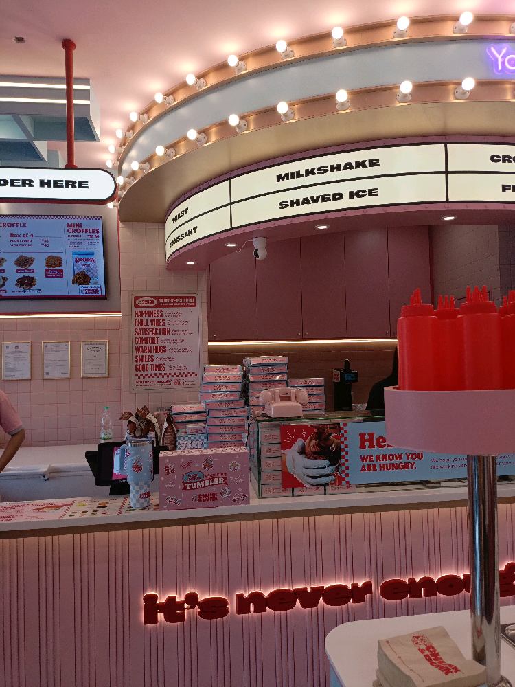 My first time visiting the Lintas diner outlet. Ordered spaghetti 🍝, it was delicious. We ordered one to try among 3 of us, and ended up ordering another two more so one of us can have one box each 😂 We also ordered a box of 4 croffles with toppings. It was crunchy on the outside and soft on the inside. Overall, yummy and satisfied 🤤 And of course, gorgeous interior design. ❤️❤️❤️
