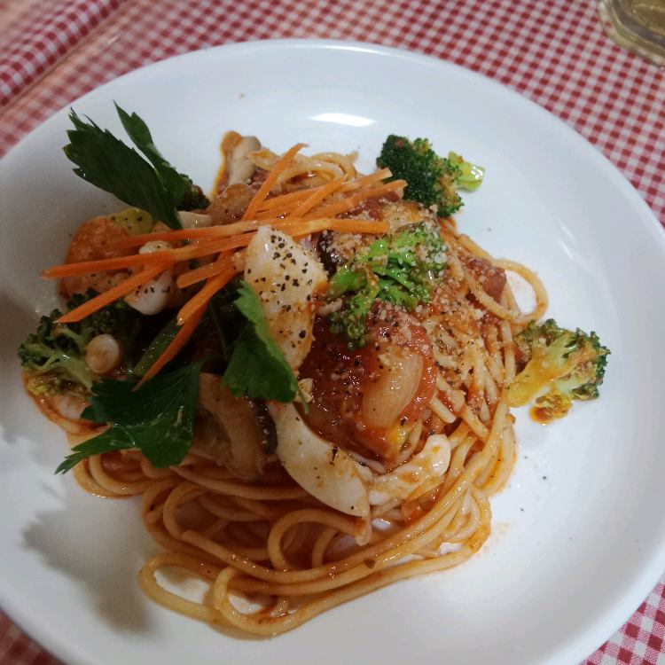 Marinara nice nice, sweet, sour, herbs, not oily, not complex, not burden. Squid tender, prawn deveined