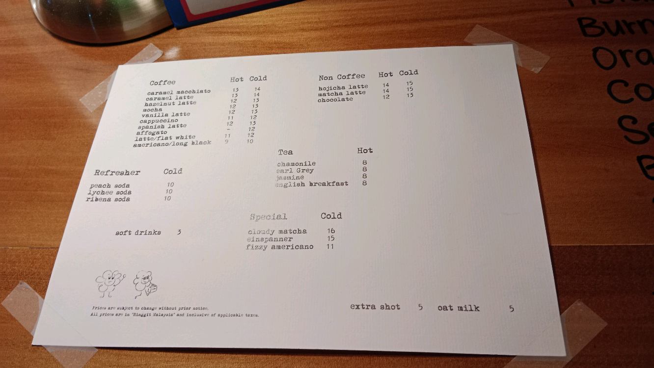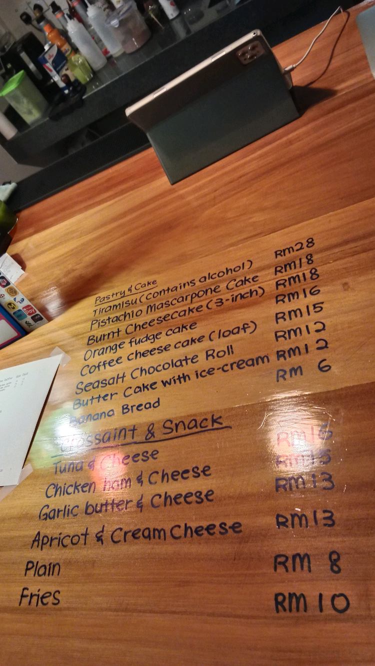 Inside Mr. Roda area Another Cuppa is selling lemon tea at Lintas Plaza, this CUPPA is serving Roleaf Tea & friends Environment 10/10: super chill, super cozy, spacious, nice music, nice vibes, excellent lighting, simple design, super suitable for quality time. Cloudy Matcha RM 16: 6.5/10 - combination of sea salt, black sesame, Eco Yap, and matcha. It was smooth, but the matcha flavor wasn't very strong, lacking fragrance. I would prefer it if the black sesame was blended more into the matcha. It was served in less than 5 mins Hojicha latte RM14: 7/10 - I would prefer it thicker Tiramisu RM28: 7.5/10 - Very, very sweet, which overpowered most of the other flavors. Generous mascarpone, rich, but the presence of alcohol was relatively low. Seasalt chocolate roll RM12: 6.5/10 - Very, very sweet. The cake body is average, atas chocolate. They have a small TV showing football match. There's a rack displaying wine bottles. The lighting is dim, like a bar. I really would like to order alcoholic beverages here (but at the moment it's a cafe, not a bar), as the vibes are very bar-like. Sunday opening hours are 8 PM - 11 PM, which is interesting. Other days 10am-5pm (Wed closed). Will come back for the environment (night) and am anticipating some delightful surprises on the menu, as the current f&b selection isn't really capturing my interest anymore.