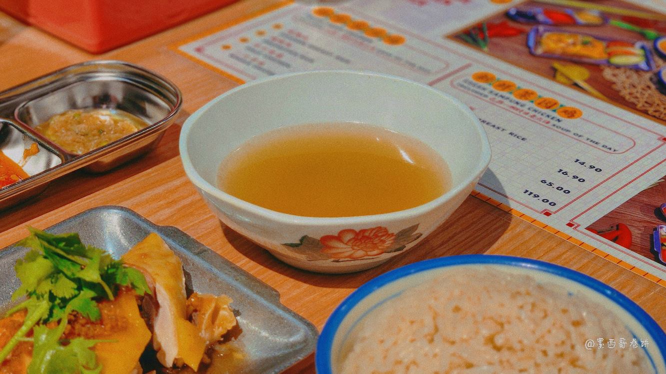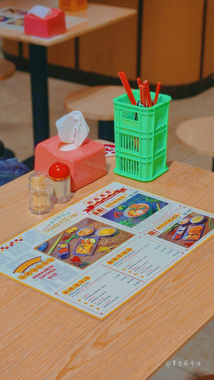Their menu highlights Hainanese chicken rice, customers can choose between farm or village raised chicken, with prices varying by the part of the chicken selected.
