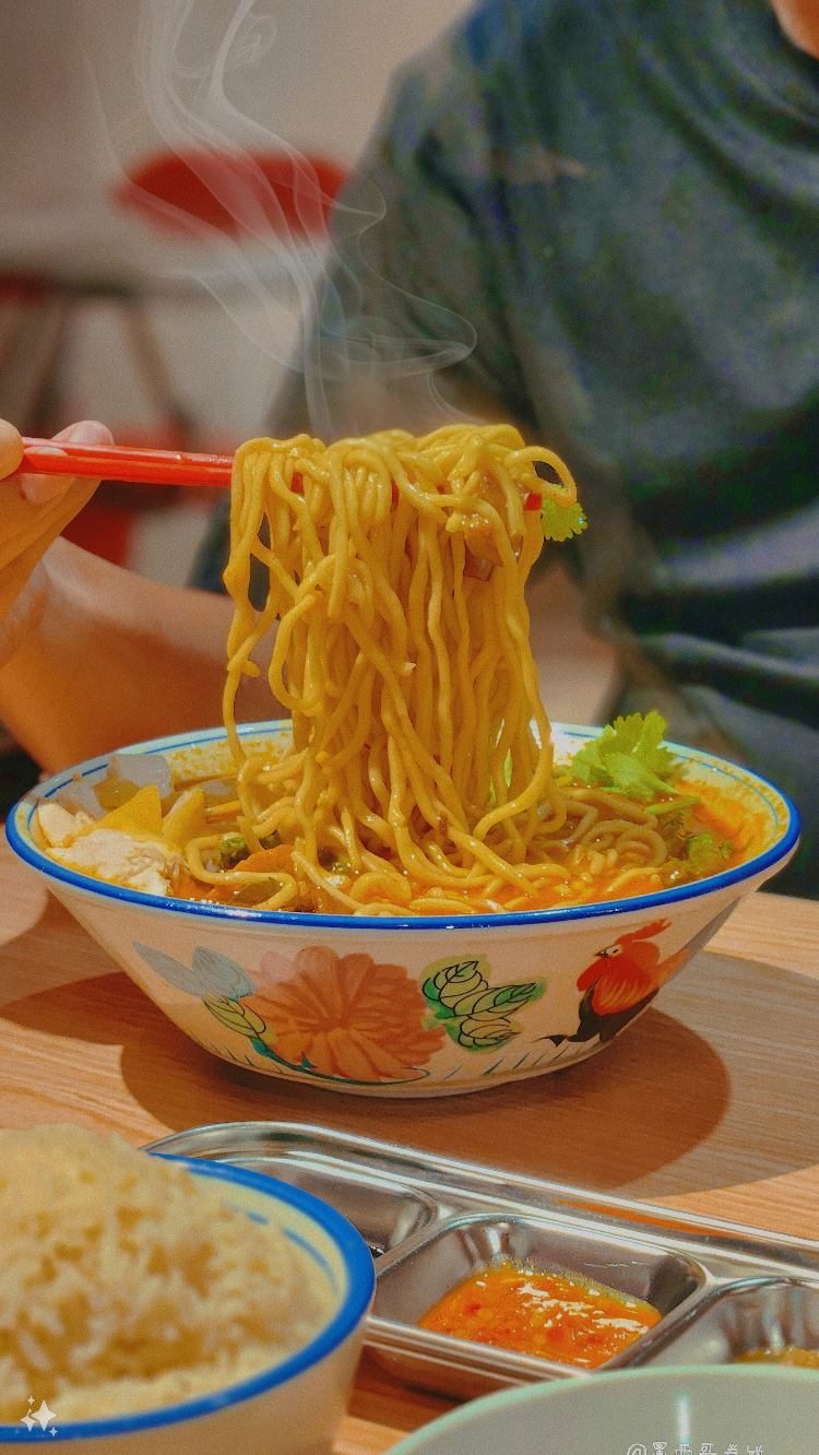 His curry noodle have mixed veggies and a side of chopped farm chicken breast, which had a distinct mushy texture compared to the village raised chicken.