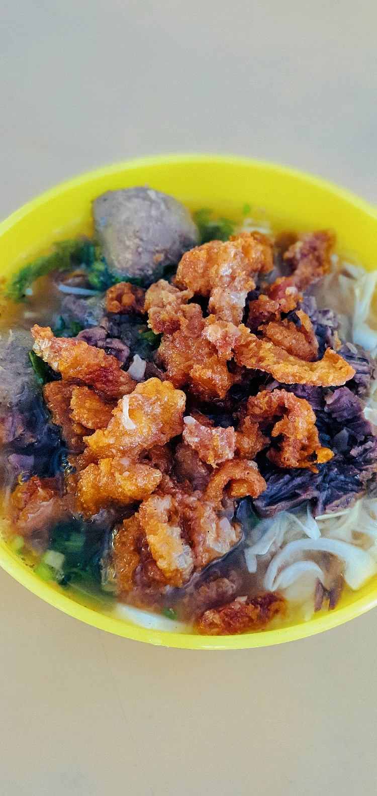I first knew this 'warung' through GrabFood app. Subsequently, I decided to visit in person, this marks my second visit. 'Warung' is an Indonesian term that refers to an outdoor food stall that serve street foods or comfort meals. We ordered: 'Ikan baulu' (milk fish) set rice served with deep fried eggplant, tempeh & cucumber slices with housemade sambal chilli the fish is overcooked resulting tough texture hence hard to chew, also it carries a subtle burnt taste nasi goreng pataya mr boyfriend likes it as it has potent of stir-dry aroma (wok hei) sup daging with added on cripsy chicken skin the soup just ordinary, but the chicken skin added an execeptional texture. They accept cash & e-wallets for payments. Business thrives in the evening & ample parking available. Kthxbye.