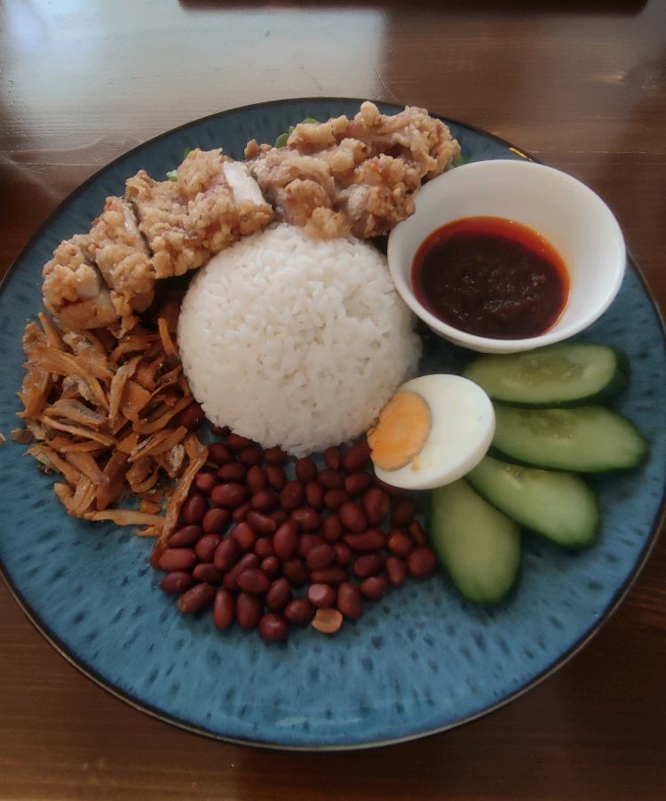 The portion quite big and the taste not bad. the sambal not too spicy, chicken very crunchy, ikan bilis a bit too salty, peanut is peanut. The rice is disappointing though, don't have coconut flavour, just like plain white rice.