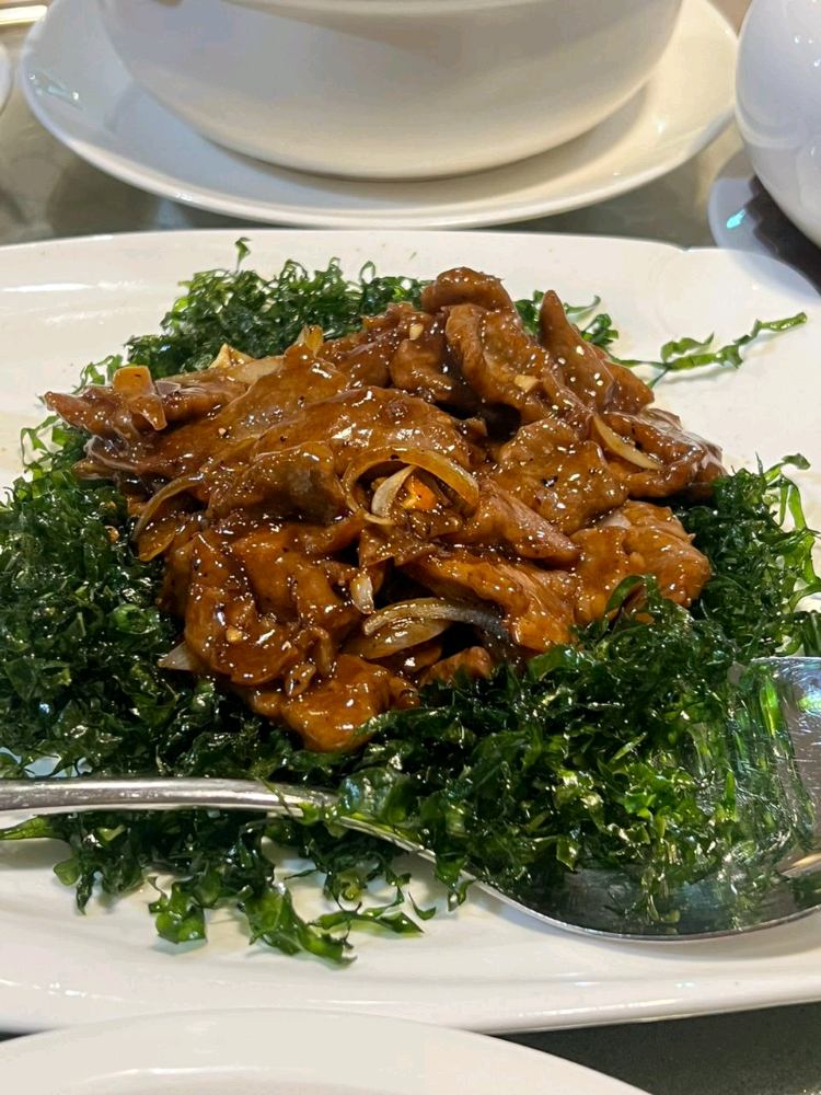 Black Pepper Beef with Crispy Shredded Kailan Shown as chef recommended. Was okay okay saja to my opinion. Guess the selling point would be its crispy shredded kailan, in which was a first to me. Initially thought it was meant for garnishing only haha but was told edible. Texture is similar to crispy seaweed.