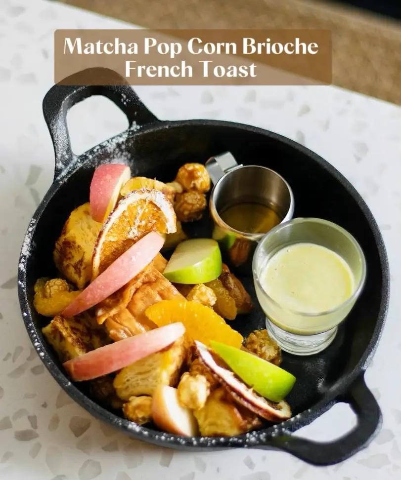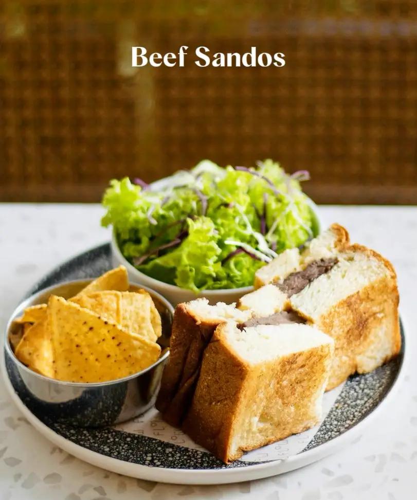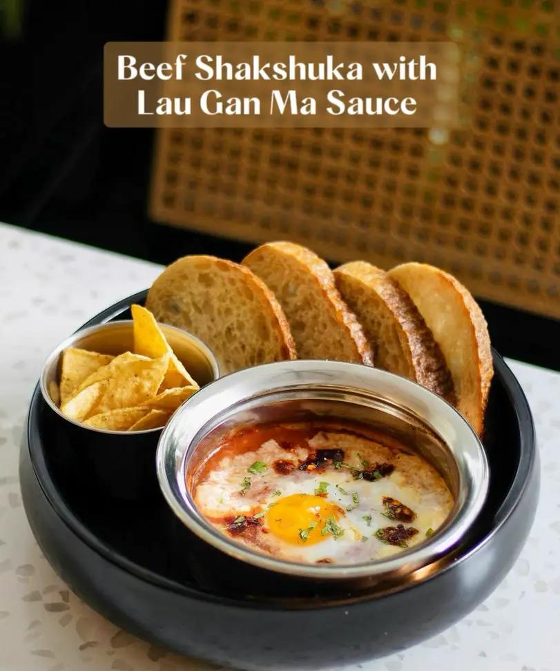 2. Beef Sandos : The toasted at Flow Cafe are a must-try. They are made with juicy patties and generous portions. The Flow toasted is their signature dish that comes with a beef patty, caramelized onions, lettuce, and nanchos, served in a brioche bread. Veggie sandos are also available. I was ordered Matcha popcorn Brioche French Toast, Beef Shakshuka with Lau Gan Ma Sauce.