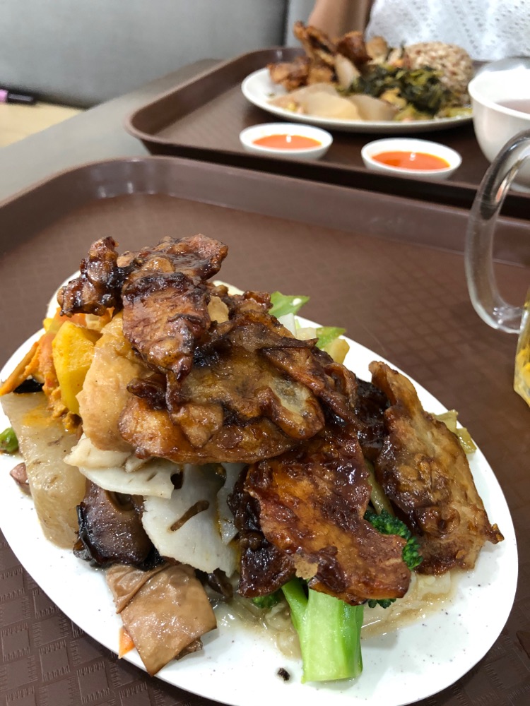 They have quite a wide mixed rice selection and also cooked food you can order at the counter. My favourite is cha sau fried rice. Understandably, it's not real meat because its a vegetarian restaurant. I pair it with the sambal here and it's delicious. Rice dishes come with a small free bowl of soup. Big portion and satisfactory.