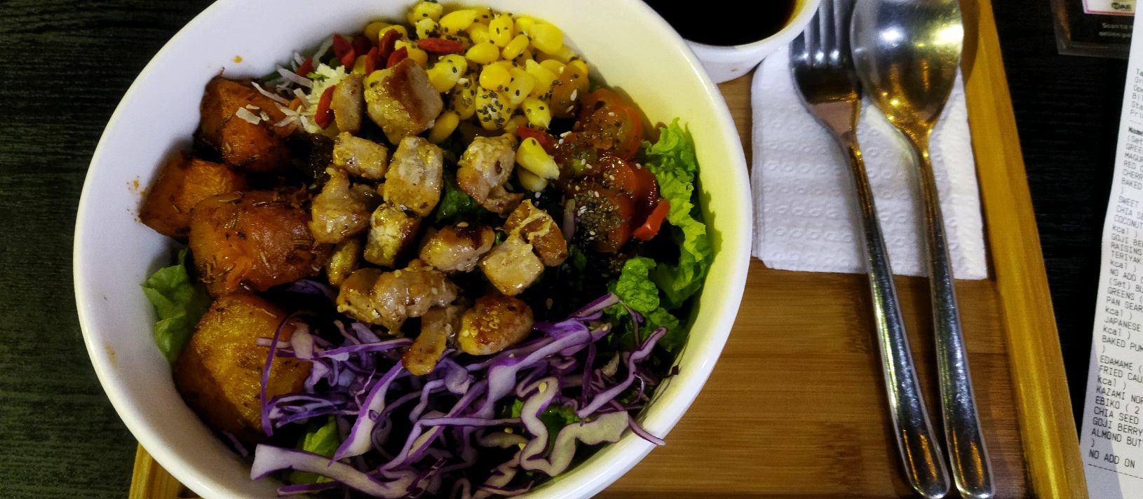 Build your own poke bowl 🍲 I like their fried cauliflower and their almond butter sauce. Their almond butter sauce kinda match with greens. Not so like their ABC soup, taste abit weird to me sry Portion kinda big, just order through the foodie web abit confusing at first. Make sure after u order press to payat cashier or through payment gateway else they will be like duno u ordered
