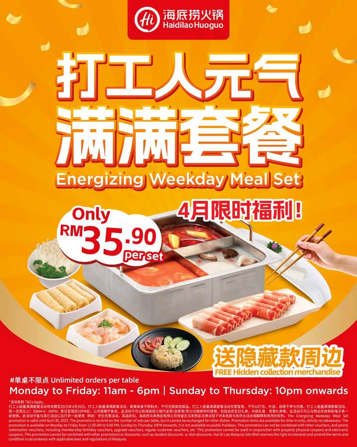 Tried the weekday set—everything was so yummy, portion is big enough for two, plus unlimited ice cream and tofu pudding, free toy for kid, manicure voucher, WeChat photo printout, and keropok. Haidilao really knows how to make you feel pampered!