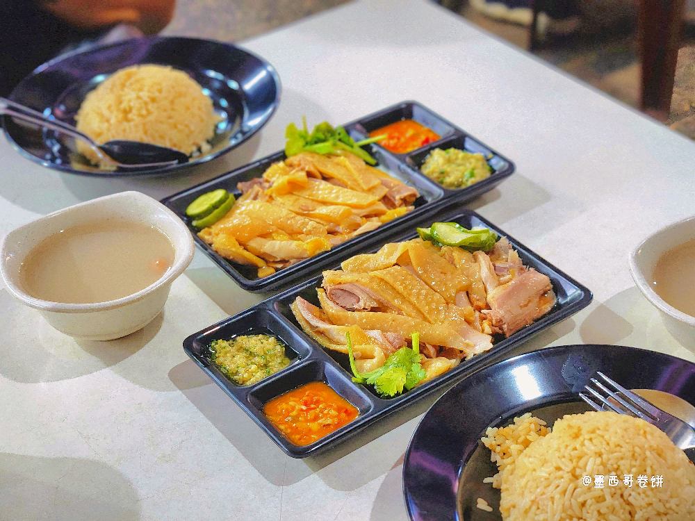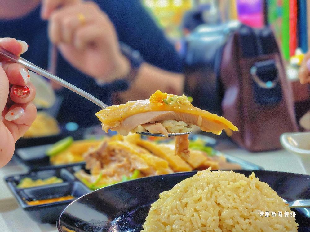 The mixed chicken is served with a limited portion of their house-made ginger and chili condiments, pickled cucumber, and chopped coriander on the side.