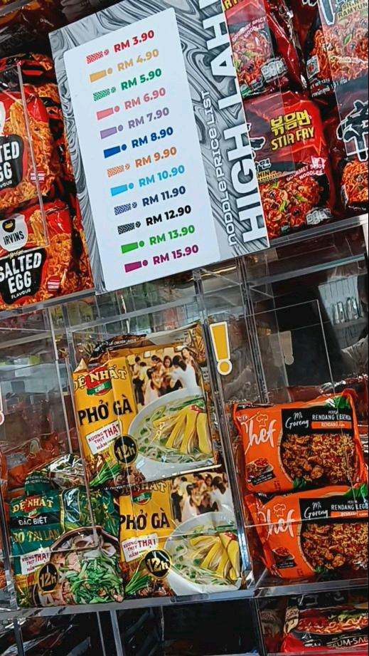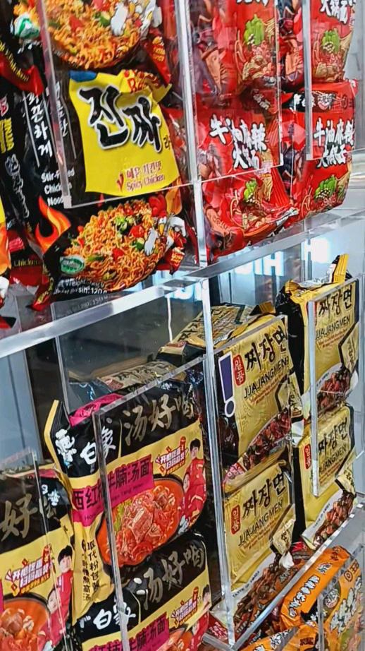 They’ve got a wall of instant noodles from around the world—perfect for Insta feed or late-night cravings.