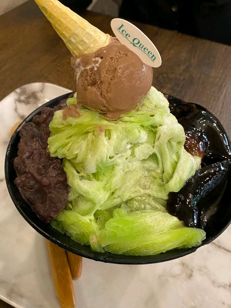 I opting matcha-based shaved ice big size with added red bean and yogurt bubbles. Unfortunately, the pudding was sold out.