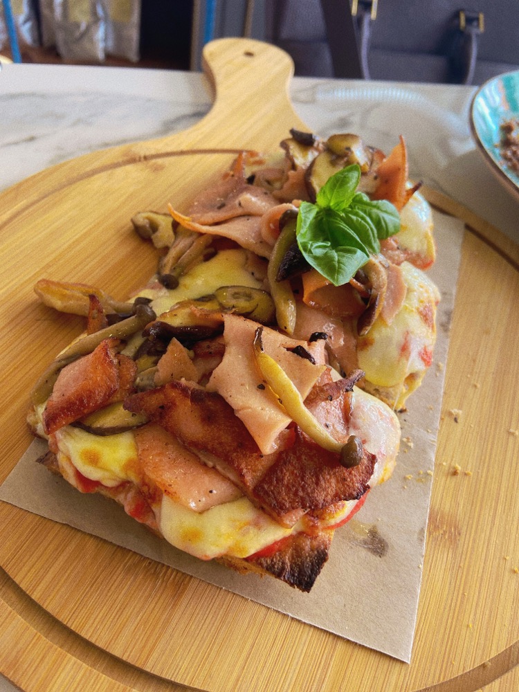 We order for Bolognese pasta & Turkey ham mushroom pizza