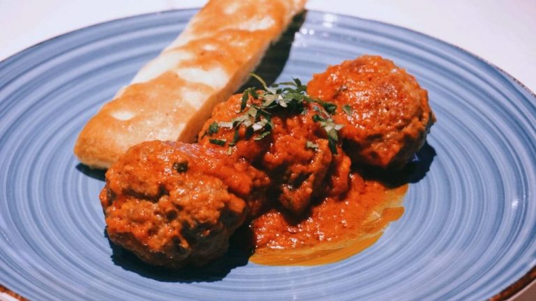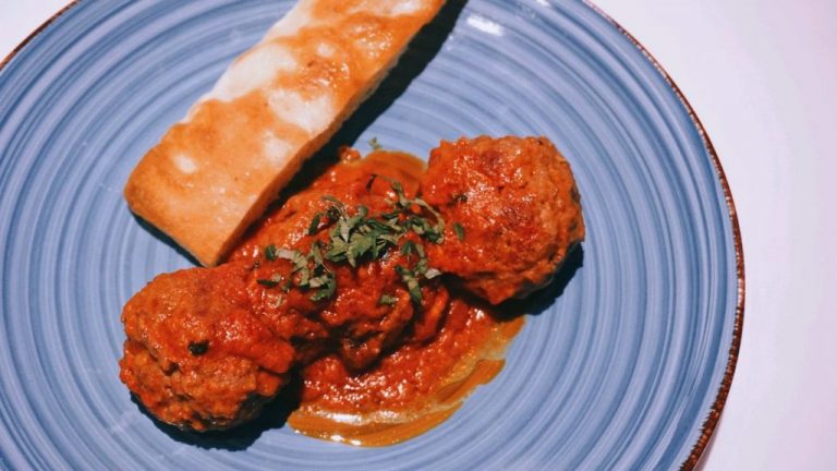 We ordered aus meatballs served with bolognese sauce & garlic bread, Margherita pizza & iced mocha (special request & not in the menu).