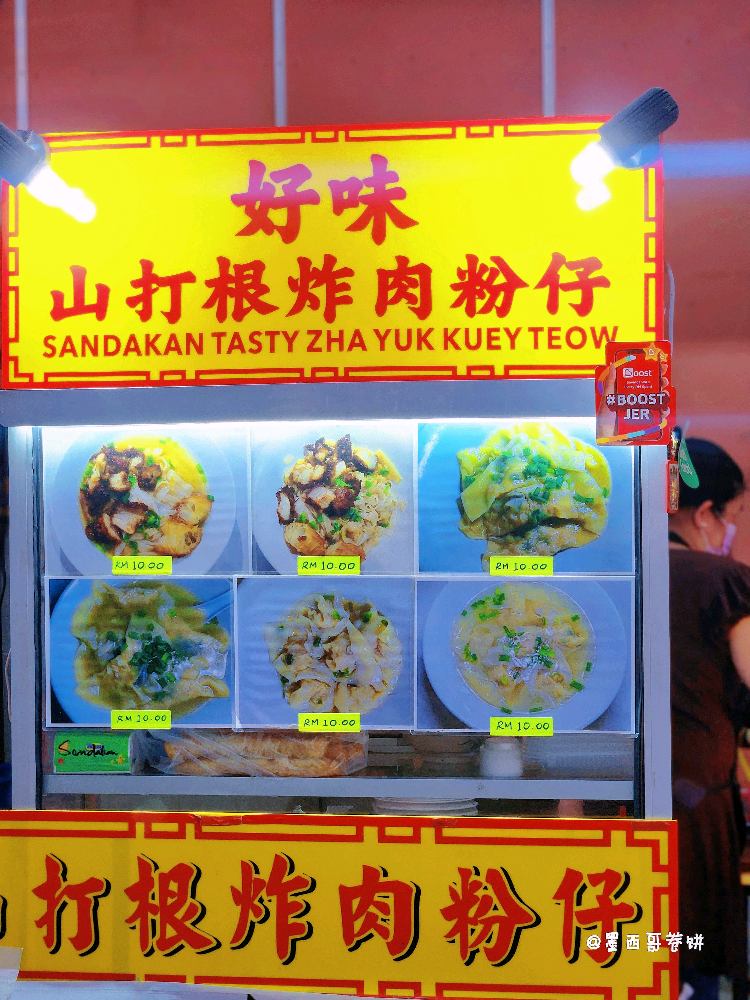 There's a single stall serving Sandakan deep fried meat pork with flat rice noodle. You can choose dry mix or soup type. I'd both. I ordered the soup type with mixed (deep fried pork & wontons). The dishes were average to me. No big wow. They accept cash & e-wallets for payments. Polite service. Checkout my ig:_humanburrito.bki for pictures & videos. Kthxbye.