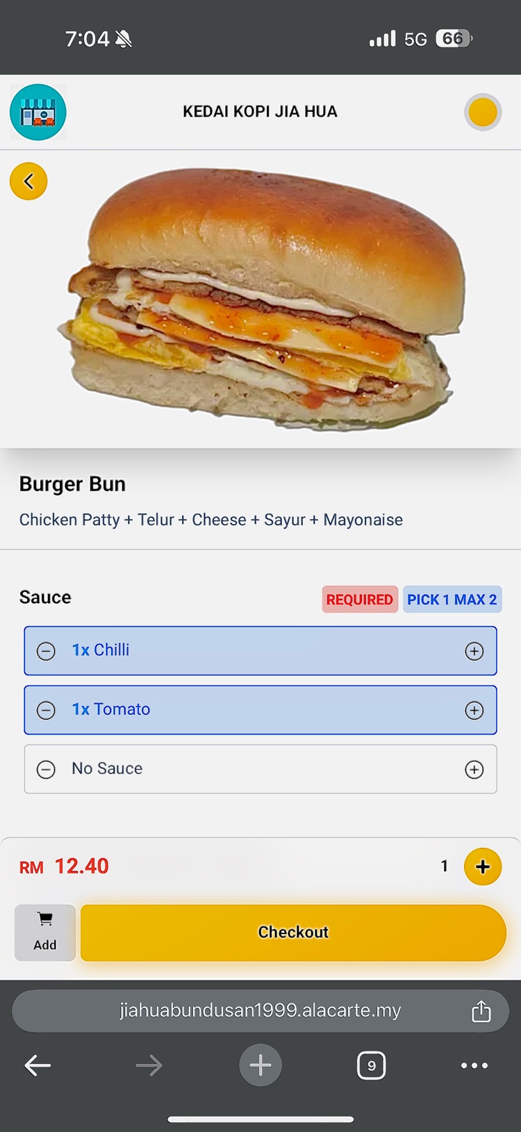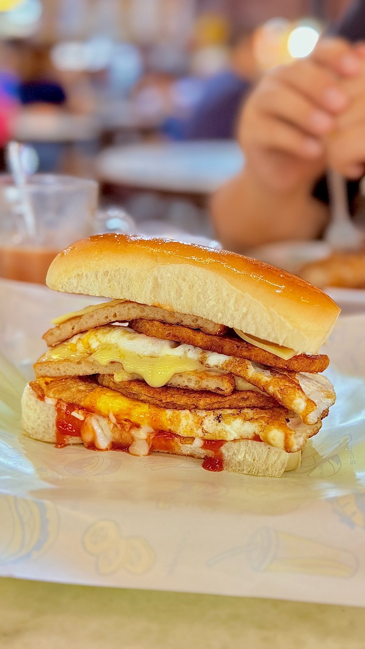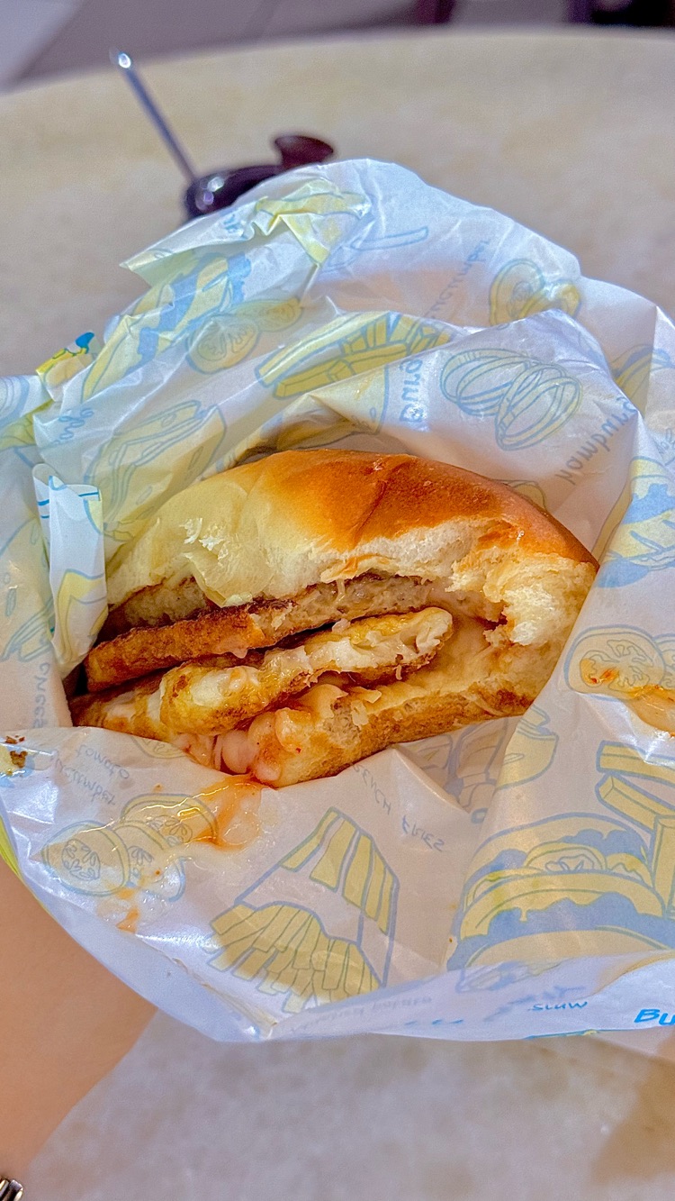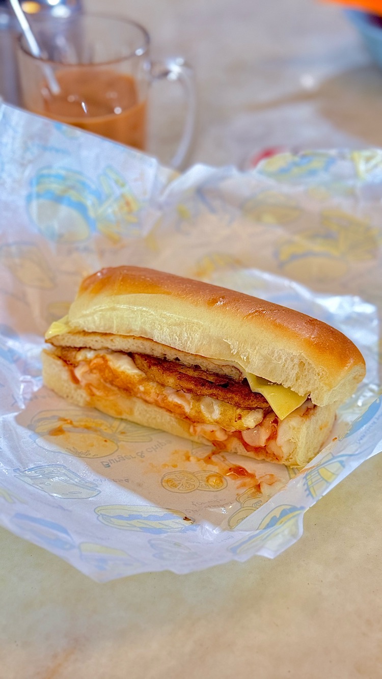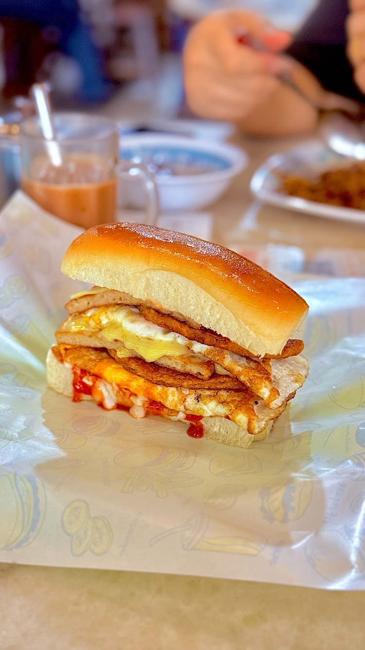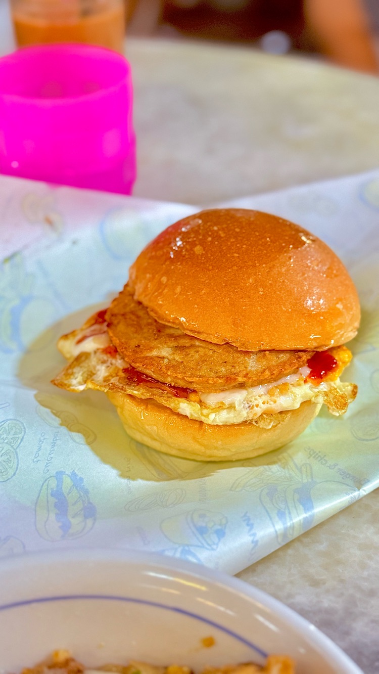 If you're bored of the usual noodle or nasi lemak options at there and opt for something different, give Jia Hua Kopitiam’s chicken burger/sandwich a try! The ordering process is super convenient—just scan the QR code on the table, and your food will be served quickly. Give it some time though to cook and serve. When they first launched, they only had the regular burger bun, but now they’ve added their famous long bun, which I think looks and tastes even better. I tried the regular size bun before, but my recommendation? Go for DOUBLE! Double chicken patty, double fried egg, and double cheese so satisfying! Flavour-wise, it’s not as salty as a Mekdi McMuffin—it’s slightly milder, but you can easily enhance it up by adding Maggi seasoning from their soft boiled egg set. Kthxbye.