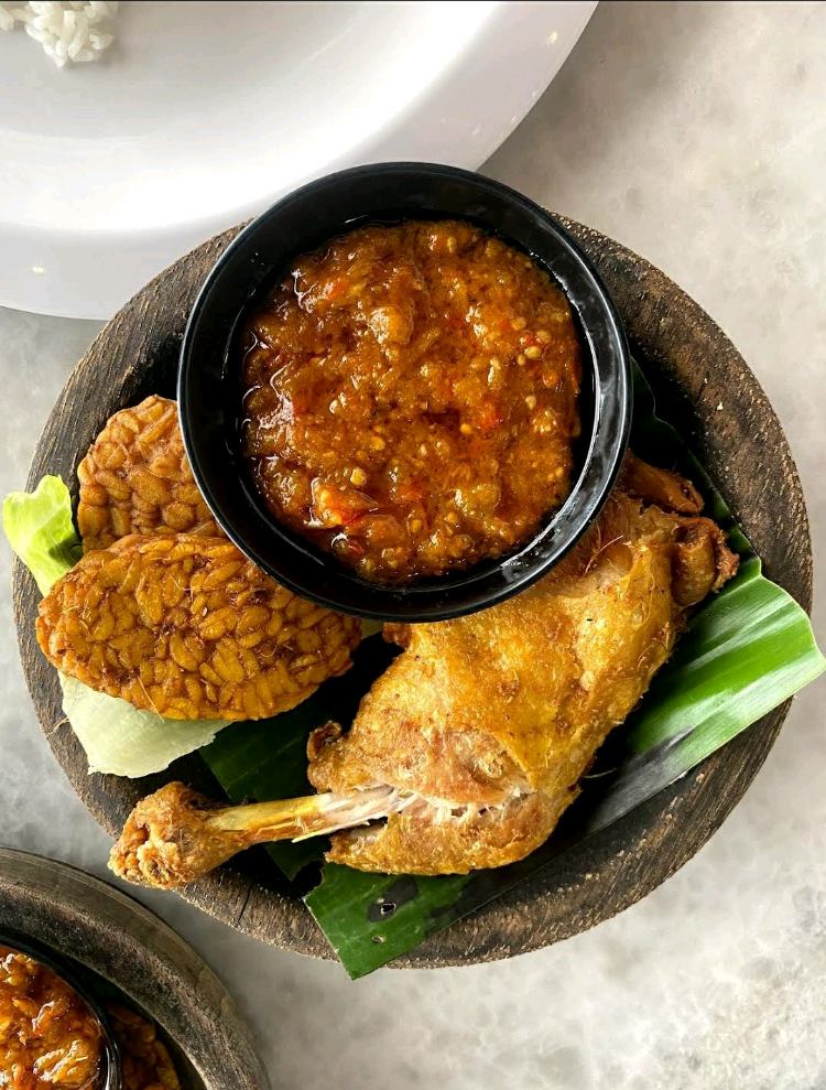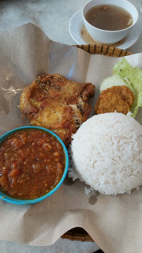 There are different varieties of ayam penyet like ayam keremes which is ayam penyet plus those fried butter crunchy things on top.