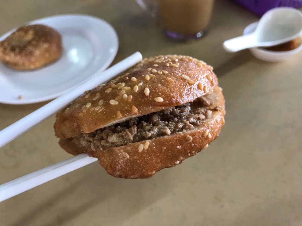 known as 'foo chow' bagel, the meat is lesser than what's shown in the menu, anyhow it cripsy & served while it's hot