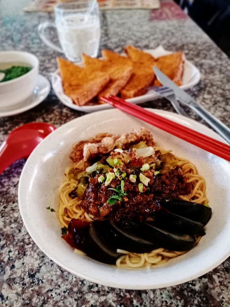 Signature Noodles: Century egg+ Pork Chop+ Minced Meat+ Ham Choi+ thick noodles = dunno how to describe, not bad not good for me