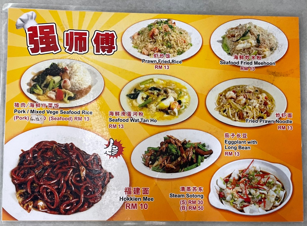 Kiong Shi Fu's signature dish is their hokkien mee but I prefer their fried prawn noodle more. The noodles are stir fried with seafood, comes with a bit of broth, and topped with fried pork lard. Very much more flavorful and diversed compared to hokkien mee, in which you get pork, lard and cabbage mixed in dark soy sauce only. Disclaimer: Menu taken off Google. Price might vary.