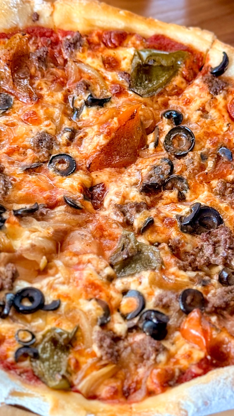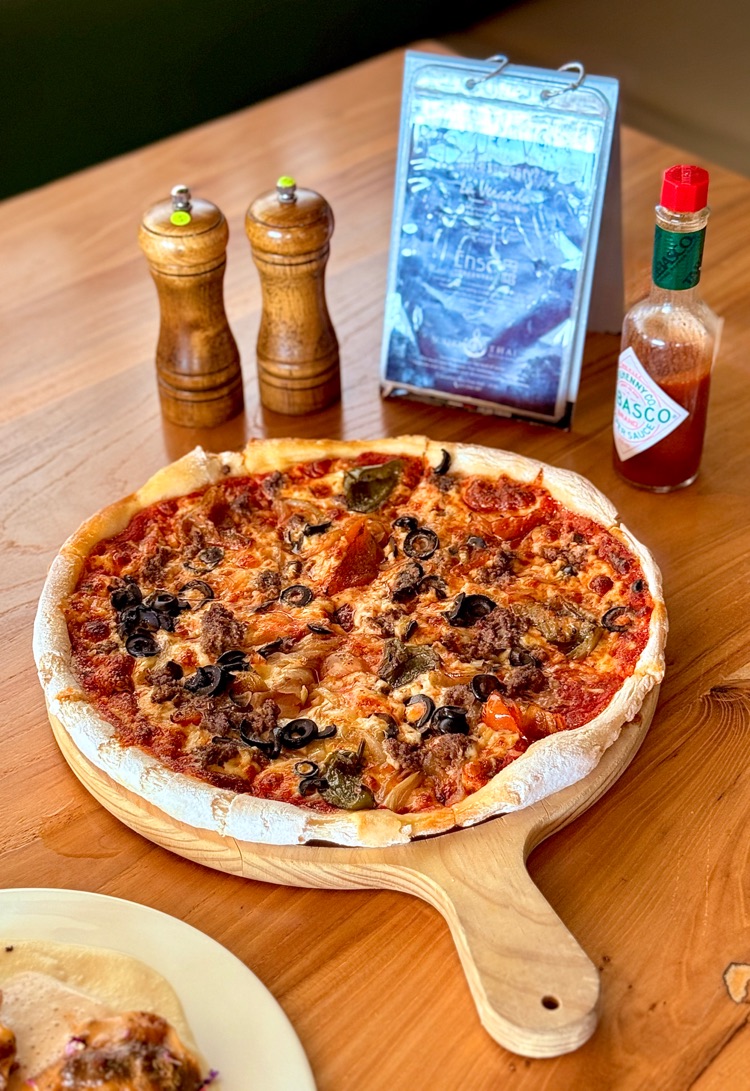 🍕Abruzzese (minced beef and lamb with mozzarella cheese, caramelised onions, capsicum, black olives, sesame paste, tomato sauce and seasoned with cumin)