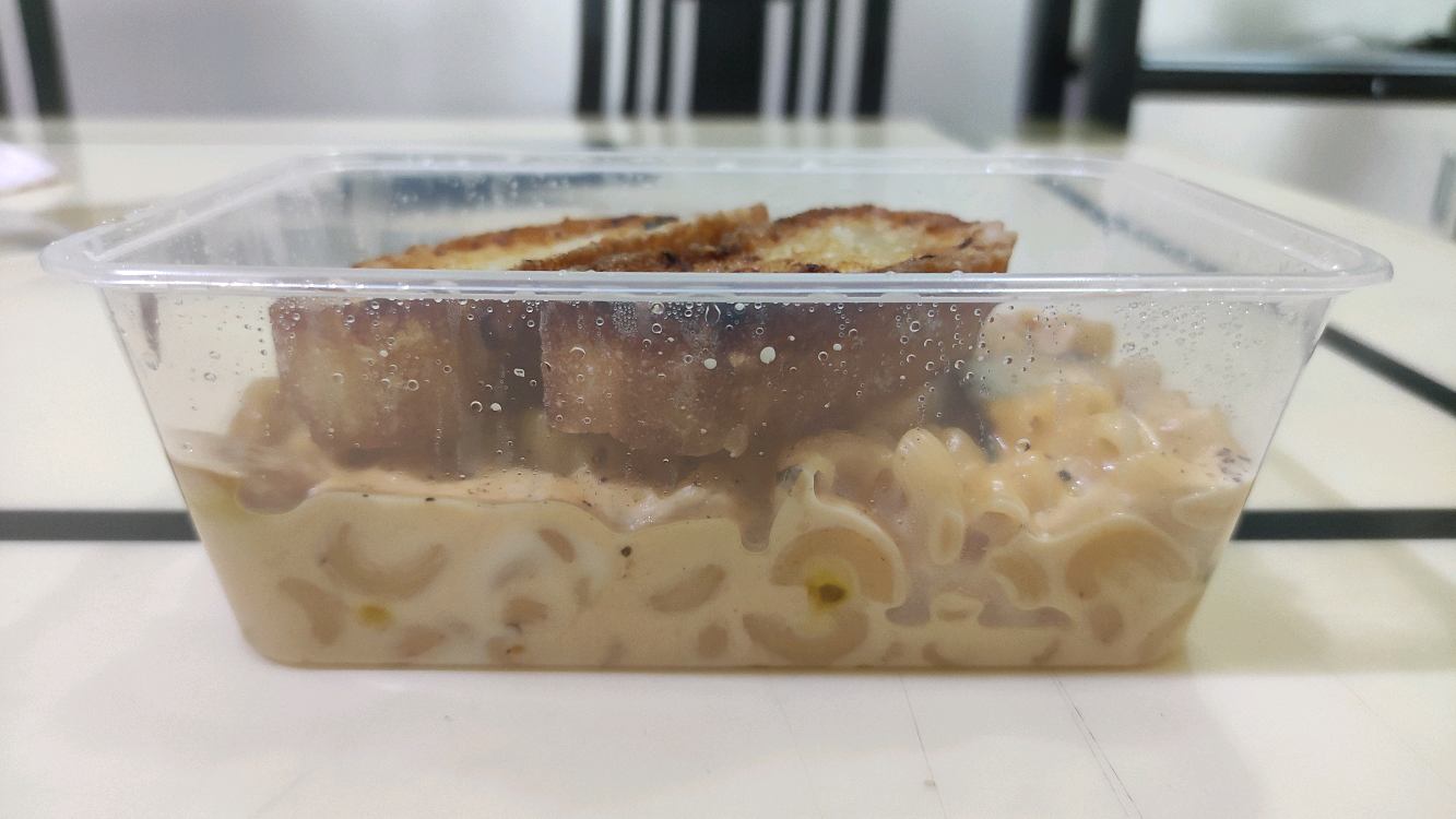 First time try these kind of pasta, cheesy marcoroni with mushroom slices and sausage. Can feed 1-1.5 person i think, quite delicious. Got potential to be my grab comfort food.