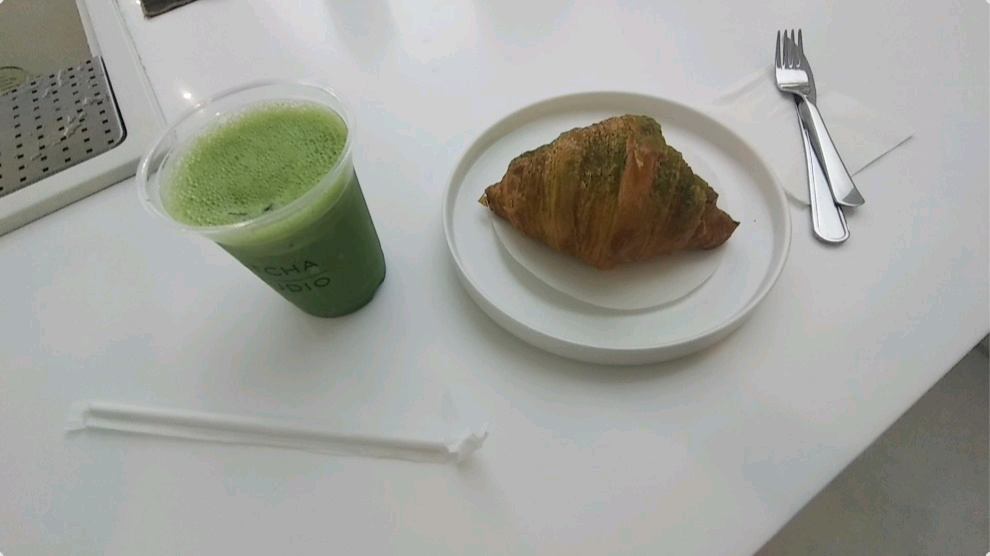 Paired it with a matcha croissant, perfectly flaky with a delicious green tea aroma.
