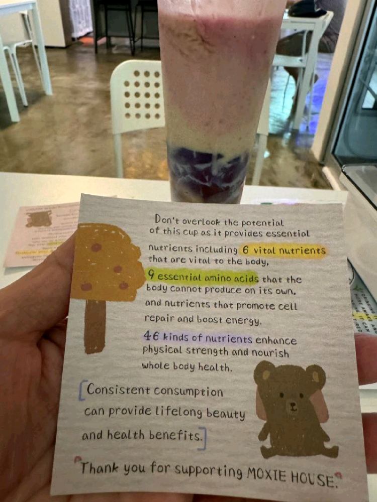 Moxie House Bounce & Sip in Padimas Point is an absolute workout gem! From the moment I walked in, I was welcomed by a vibrant café vibe and a gym room. A refreshing Herbalife detox aloe drink was prepared for every participant to keep us hydrated throughout the session. The one-hour trampoline workout was full of energy, and the music had me bouncing with joy! A night trampoline session would be even more exhilarating with disco-like lights flashing all around, accompanied by upbeat and energetic music.) The highlight was the delicious and healthy Herbalife milkshake served after the workout – the perfect reward for such a fulfilling session. As a newcomer, I also got a health analysis using a Body Composition Analyzer. It provided insights into my body fat, visceral fat, metabolic age, and more—such a thoughtful way to personalize the fitness experience. They also offer healthy, low-calorie selections like overnight oats, tiramisu, brownies and protein bars for sale, ideal for individuals focused on weight management. If you're looking for a fun way to stay active and energized, Moxie House is the place to be!