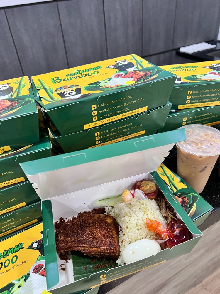 Our factory is having food safety training today, and I just WhatsApp one of their staff to ask for orders and I might need they provide delivery before 12. But in this short time frame, they still prepare my large orders on time and arranged the delivery quick and efficiency. Their signature nasi lemak ayam goreng and teh c ping are both good, and the exquisite packaging is even more catchy for take-away food or events catering, and their brand image has left a good impression.