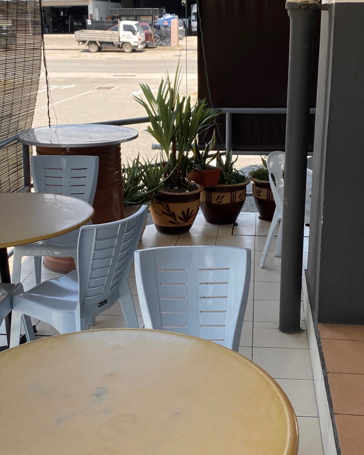 Place is okay, the male boss has some weird smile 😅 . Its open air.