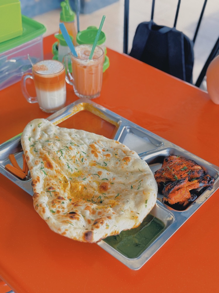 Mr Hubby knows I’m fond with cheese naan. He took me to try this mamak cheese naan, and I absolutely love it! The naan is super soft and pillowy, subtle hint of sweetness, handmade and freshly baked on the spot. Also, the chicken tandoori is well-marinated and reheated perfectly, bursting with spices flavour. Even though the cheese didn’t have that stretchy, cheesy pull, anyhow it was just perfect for me. The best part is I didn’t have to wait for too long, the whole process was reasonably quick! Instead of plain naan, he added garnish on top, which elevated the overall presentation of the dish. The cheese naan is served on an iron plate with pickled carrot, mint, sweet garlic sauce and curry. I preferred savoring the freshly baked naan these days without it being overloaded with cheese. I paired it with hot Teh Madras, though even after asking for less sugar, it still taste overly sweet. I’ve been there twice, afternoon and night time, the quality consistent still, and I’m satisfied. Kthxbye.